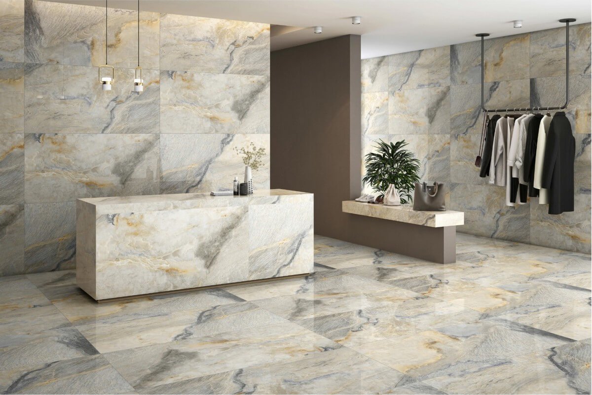 Rectified edges ensure precise narrow joints, enhancing the continuous surface appearance and allowing the dynamic multi-colour pattern to flow uninterrupted. With 4 different faces, Aniksa offers subtle variation from tile to tile, preventing repetition while maintaining a cohesive, lively aesthetic across larger areas.