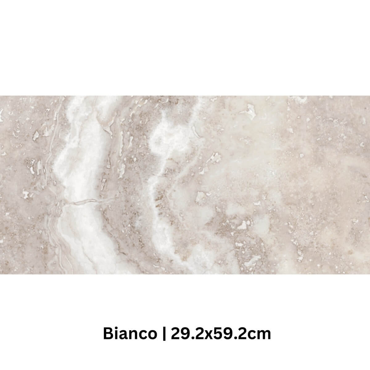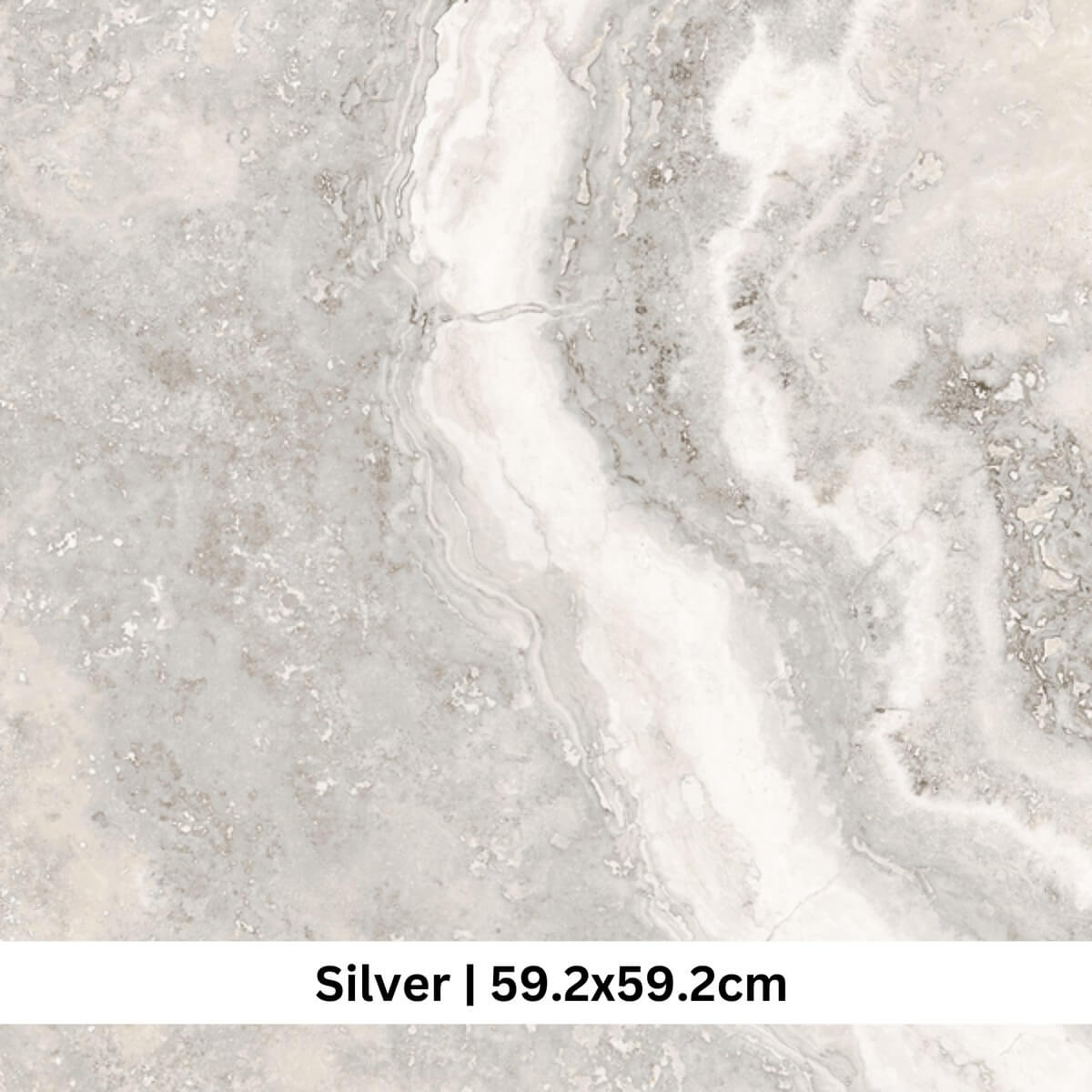 Caracalla porcelain tile delivers premium quality with its glazed, rectified edges and multi-face designs across three popular sizes: 29.2×59.2cm (30 faces, 0.9cm thick, 7 tiles/box), 59.2×59.2cm (20 faces, 4 tiles/box) and 60x120cm (10 faces, 2 tiles/box). Available in bianco and silver, this range suits indoor walls and floors in kitchens, bathrooms, living areas and hallways with frost-resistant durability.