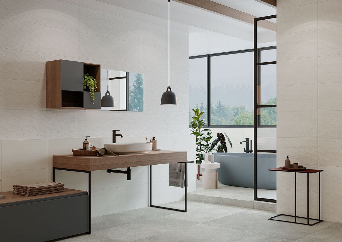 The matt finish softly diffuses light, while the relief surface adds depth and visual interest that works particularly well behind basins, in showers and on statement panels. With 21 different faces, this tile delivers varied yet controlled patterning that enhances the textured effect without appearing busy or repetitive.