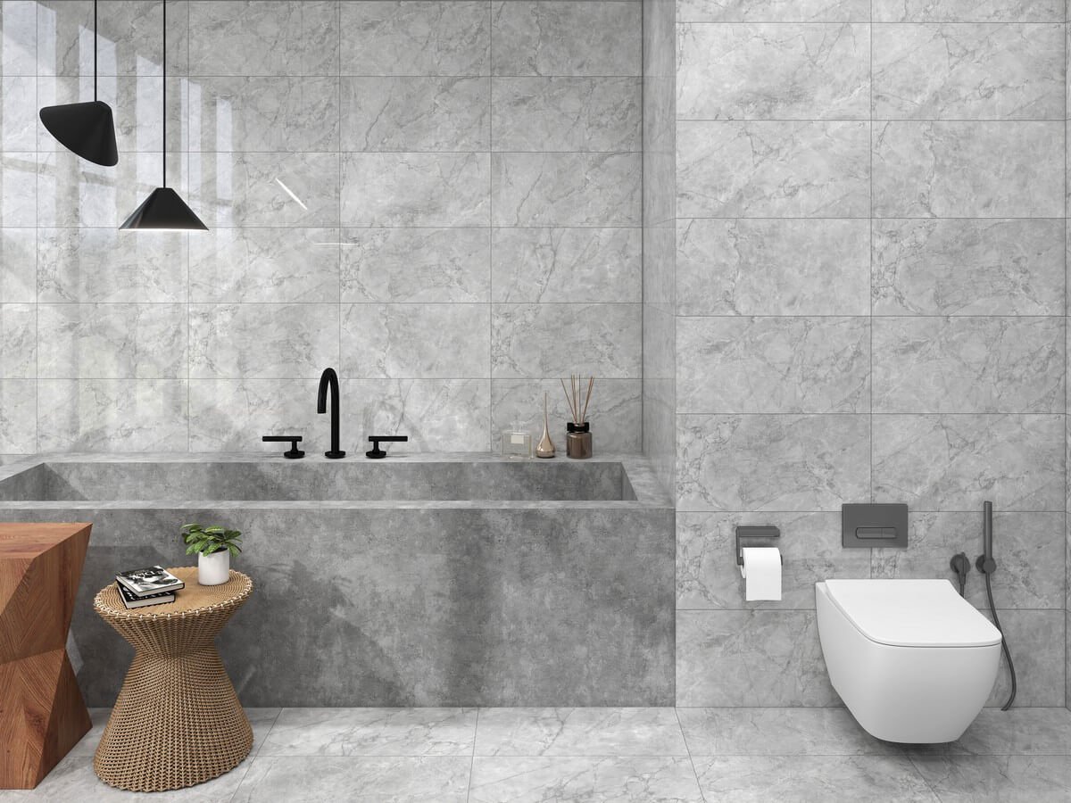 Elgin Dark Grey Polished Porcelain Tile 300x600mm is a sophisticated dark grey porcelain tile with a polished finish, suitable for both walls and floors. With 12 faces for natural variation, it delivers a bold contemporary look and is also available in 600x600mm plus pearl, light grey, and graphite colours.