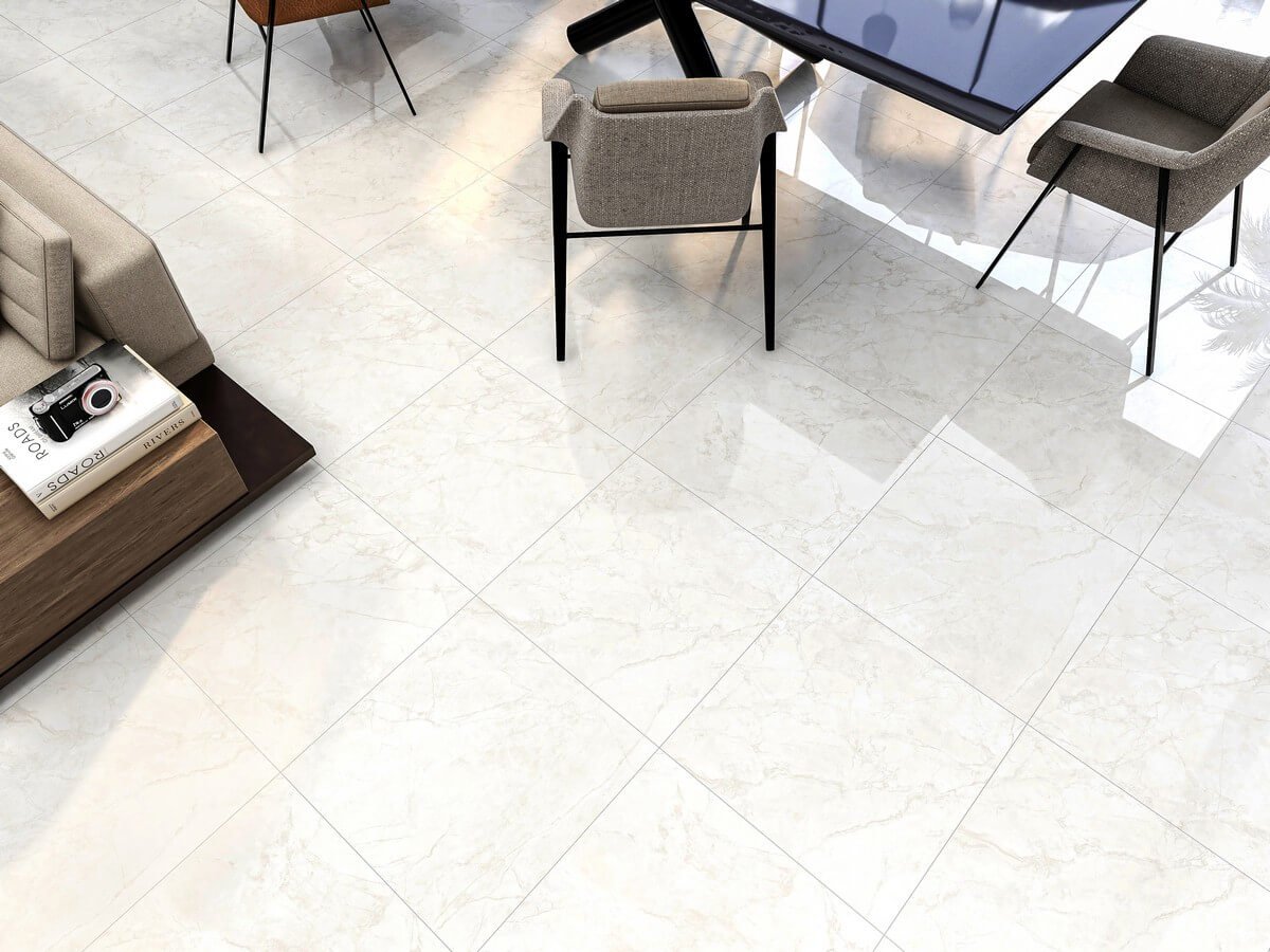 Elgin Pearl Polished Porcelain Tile 600x600mm is a stylish pearl white porcelain tile with a polished finish, suitable for both walls and floors. With 6 faces for subtle variation, it creates a bright contemporary look and is part of a wider range that also includes 300x600mm sizes plus light grey, dark grey, and graphite colours.