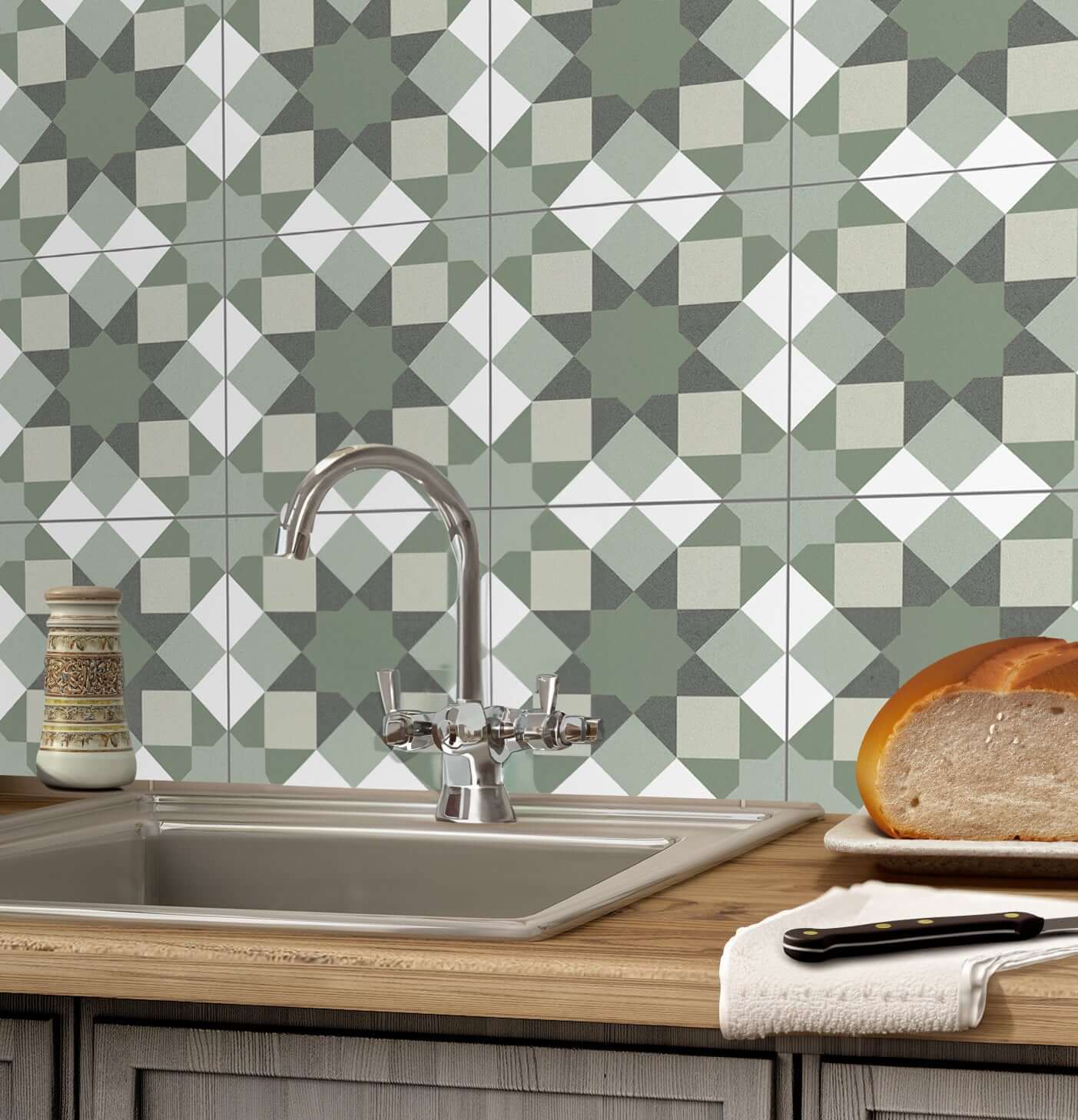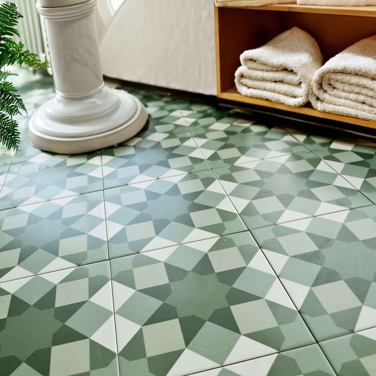 Hydra Ceramic Tile Green Patterned 200x200mm is a stylish choice for interiors, blending green geometric designs with a modern matt finish for timeless appeal. Crafted from durable ceramic and rated R10 for slip resistance, these tiles are perfect for high-traffic indoor floors and walls in kitchens, bathrooms, hallways, and living areas. The 200x200mm format suits contemporary and vintage spaces alike, while easy cleaning and simple installation offer everyday convenience. With its elegant design and lasting performance, Hydra patterned tile ensures your home or business stands out with character and comfort.