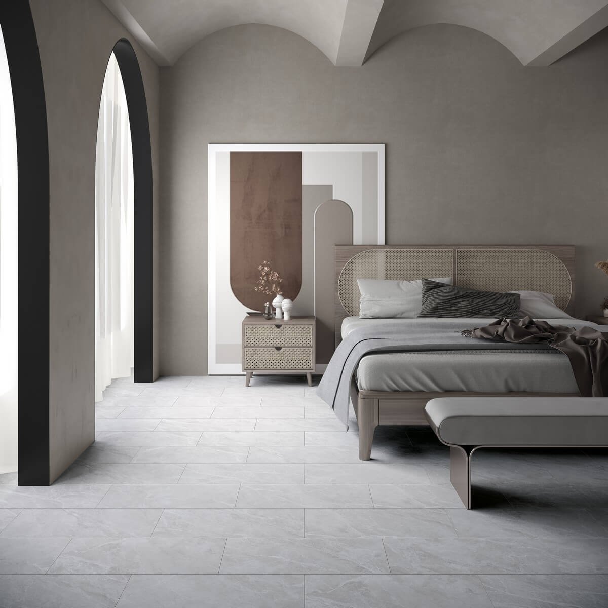 Las Palmas Light Grey Matt R9 Porcelain Tile 300x600mm brings a clean, modern stone look to interior spaces. The soft light grey tone works beautifully in bathrooms, kitchens, and living areas, creating a calm and versatile backdrop.