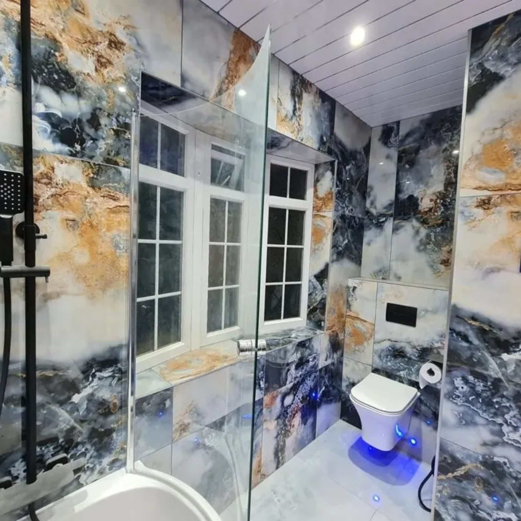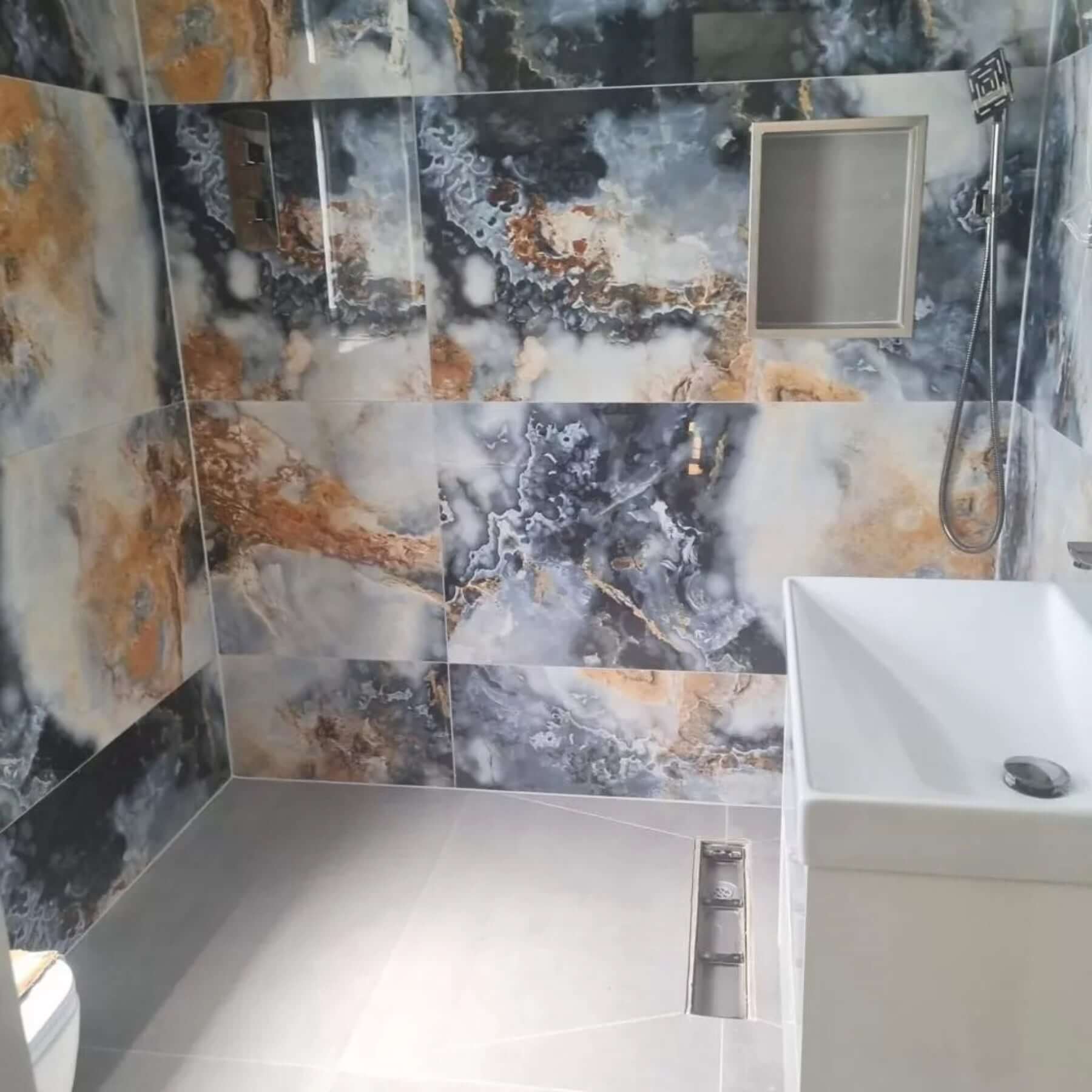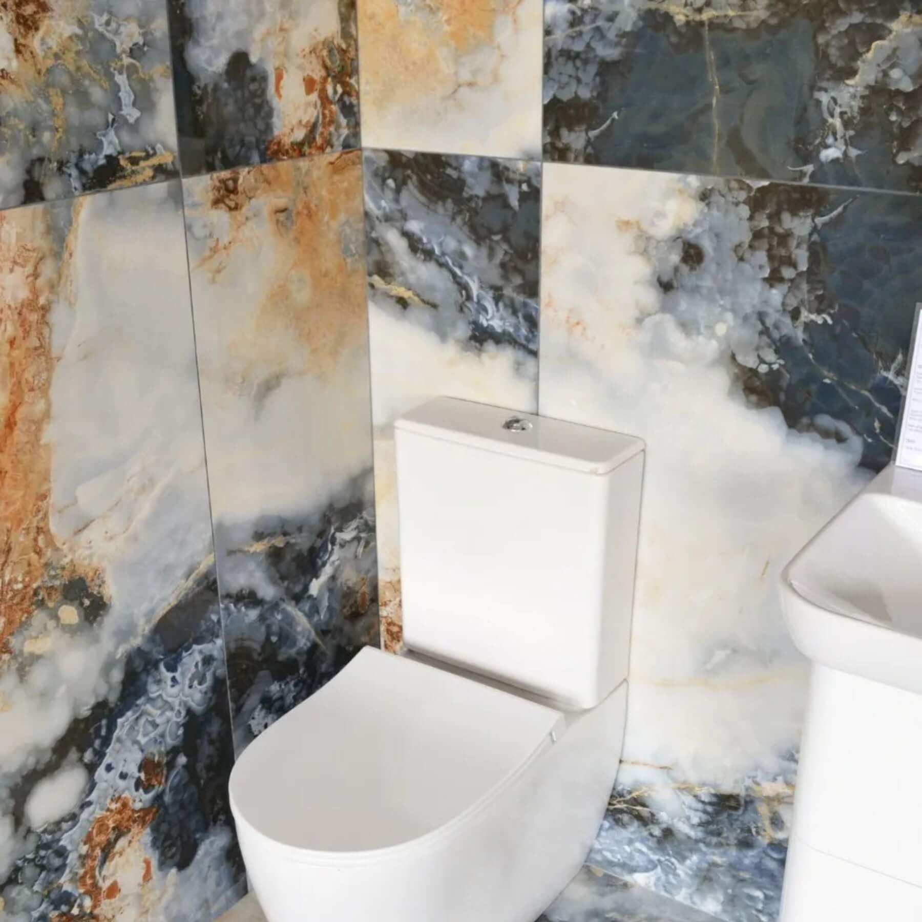 Blue porcelain bathroom tile is the ideal choice for creating a luxury modern bathroom. The Pacific 600x1200mm polished porcelain tile combines water-resistance, elegance, and durability for bathroom walls and floors.