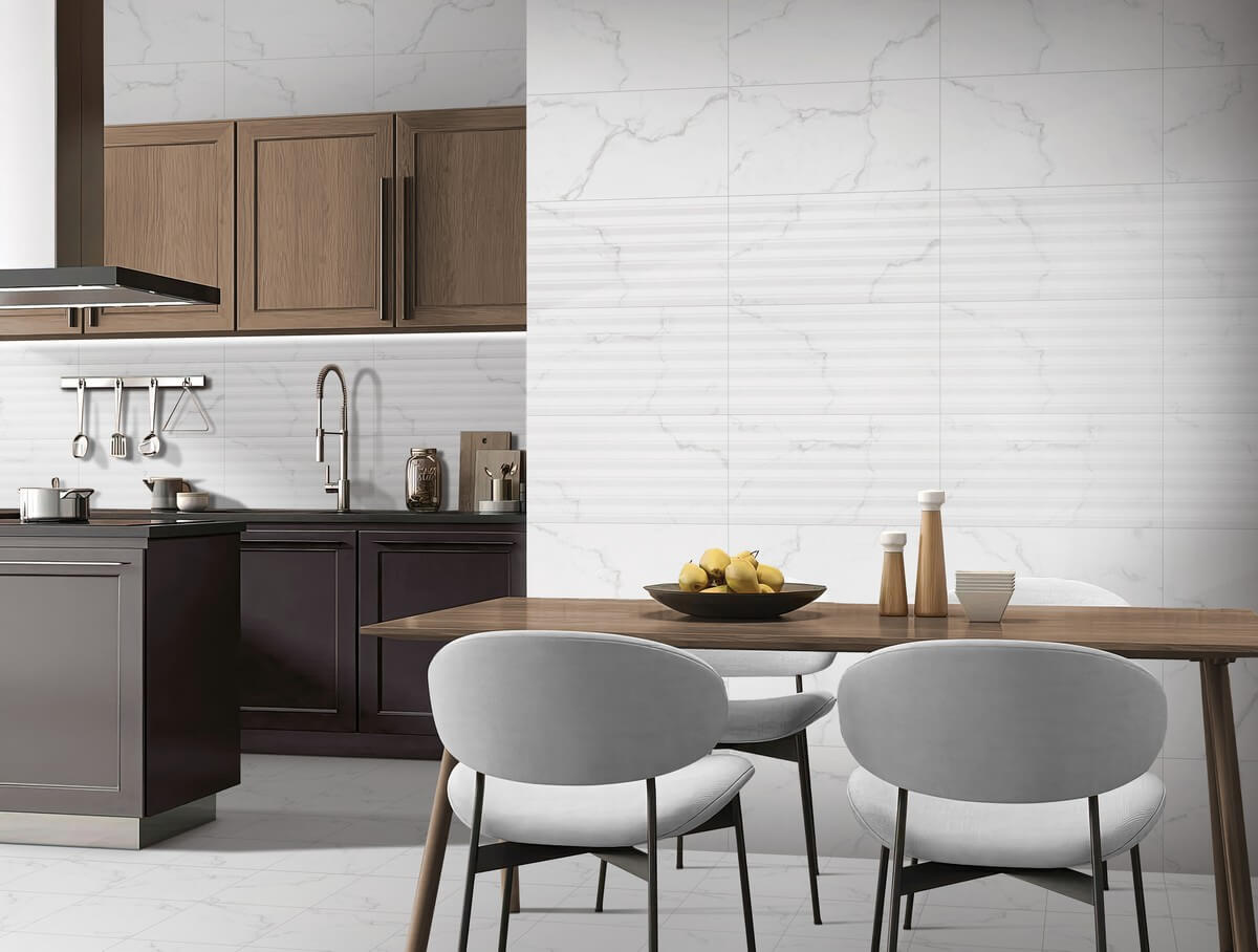 Trevi Decor White Matt Wall Ceramic Tile 300x600mm is a white marble‑effect decorative wall tile with a soft matt finish, perfect for creating calm, contemporary feature areas in bathrooms and kitchens, and it coordinates with both a plain white matt wall tile and the wider Trevi gloss range.